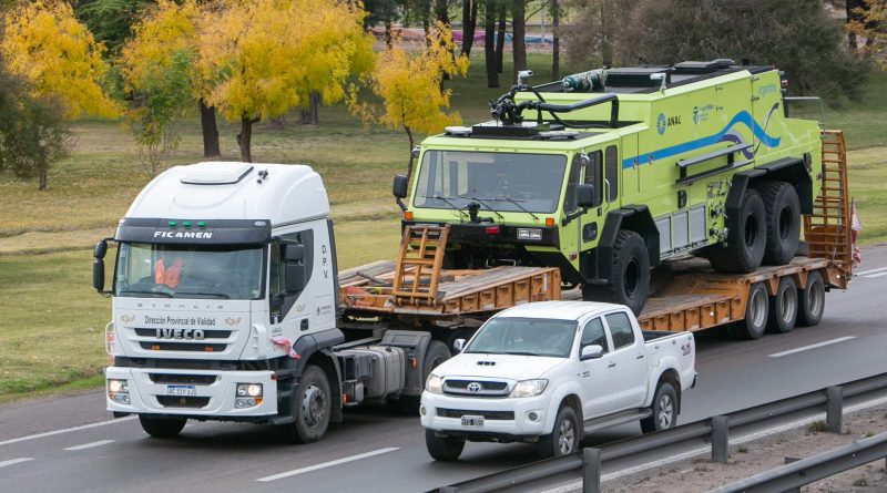 Así, Vialidad Mendoza envió un carretón con personal propio desde la ciudad de San Rafael hasta el aeropuerto de San Fernando, en la Provincia de Buenos Aires, a buscar la autobomba de reemplazo.