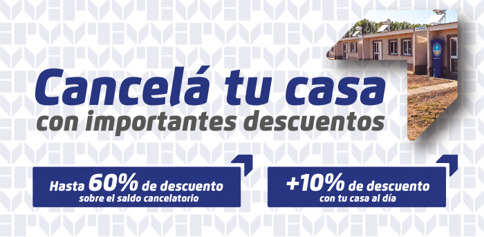 Los descuentos por cancelación anticipada establecidos en la ley van desde 60% a 40% de quita del capital adeudado, dependiendo de la fecha de entrega de la vivienda y del saldo cancelatorio del crédito. Además, se ha contemplado 10% adicional en caso de tener el pago de las cuotas al día.