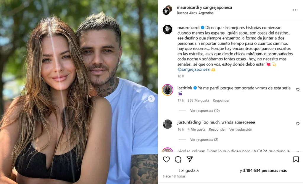 El posteo oficial de la pareja revolucionó las redes sociales y cuenta con más de 3 millones de likes en Instagram.