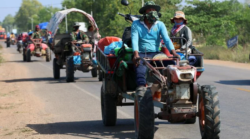 Aldeanos camboyanos huyen de sus hogares cerca de la frontera.