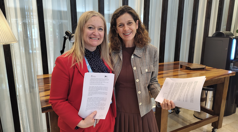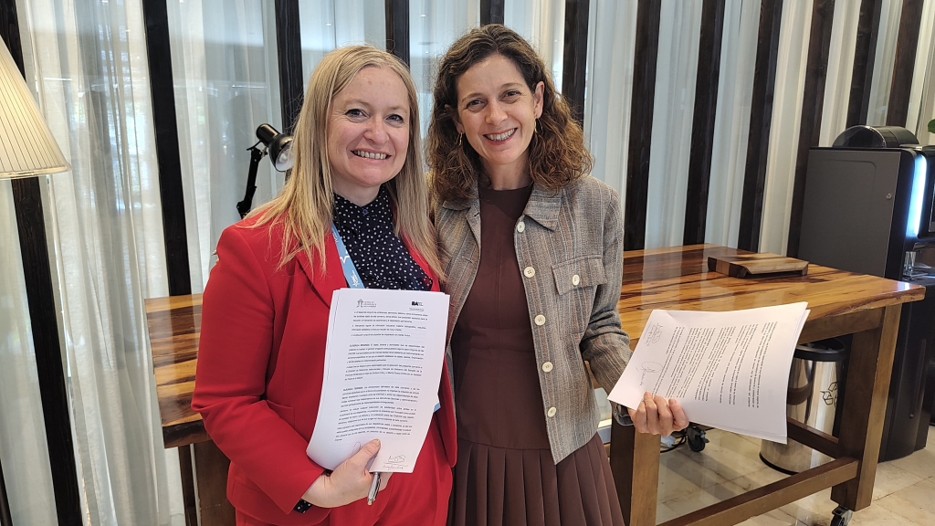 La vicegobernadora Hebe Casado y la titular de OGDAI, María Gracia Andía, rubricaron el acuerdo con el objetivo de coordinar acciones que promuevan la transparencia y derecho de acceso a la información pública.