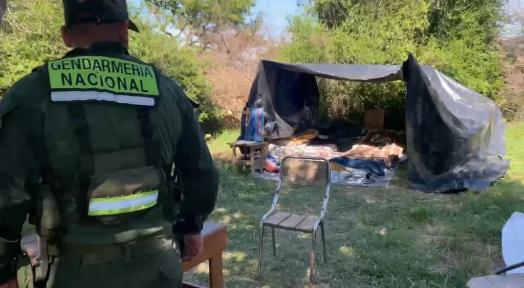 Los gendarmes constataron que residían en condiciones de extrema precariedad, sin luz eléctrica ni agua potable, donde pernoctaban en carpas caseras hechas de palos y lonas de nylon.