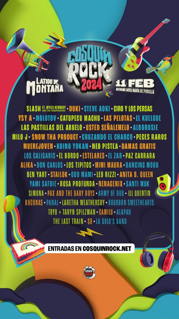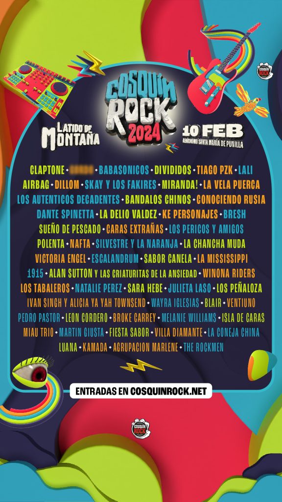 La edición del 2024 del Cosquín Rock llevara por título “Latido de Montaña” y se llevara a cabo los días 10 y 11 de febrero en el aeródromo Santa María de Punilla como todos los años.