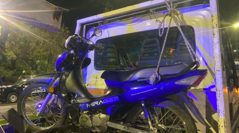 En el mismo punto, un joven de 18 años fue controlado mientras conducía una Corven Mirage 110 cc. El rodado tenía el caño de escape modificado y no poseía luces obligatorias, seguro vehicular, licencia de conducir ni dominio colocado.