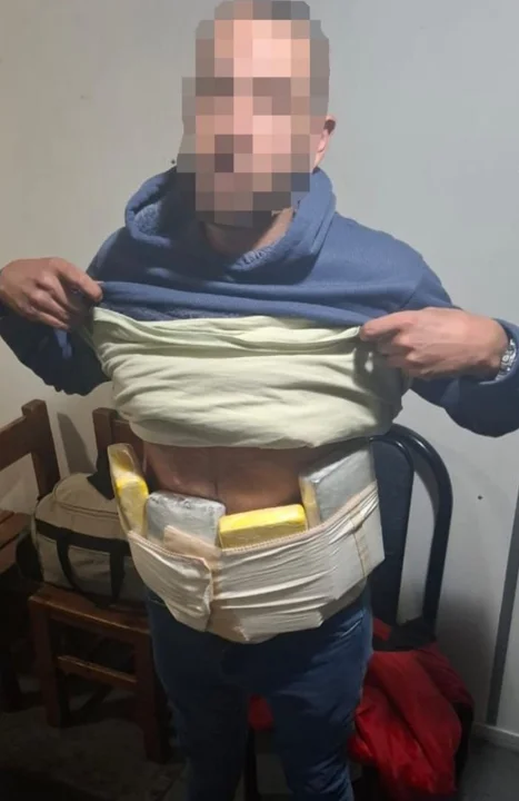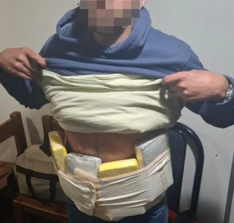 El individuo transportaba más de 4 kilos adosados a su abdomen.