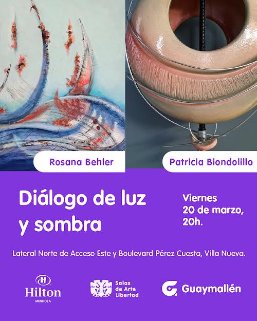 La Municipalidad de Guaymallén invita a vecinos y visitantes a la inauguración de la muestra “Diálogo de luz y sombra”, de las artistas Rosana Behler y Patricia Biondolillo. Tendrá lugar el viernes 20 de marzo, a las 20h, en el Hotel Hilton Mendoza. El evento contará, además, con la participación de Guaymallén Coral, agrupación dirigida por el músico Javier Rodríguez.