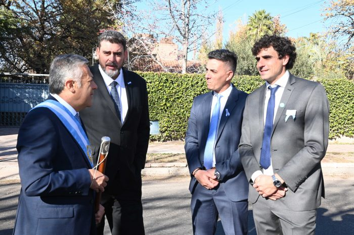 En la soleada mañana acompañaron al Gobernador los intendentes Marcos Calvente, de Guaymallén; Francisco Lo Presti, Las Heras; Esteban Allasino, Luján de Cuyo; Diego Costarelli, de Godoy Cruz, y Ulpiano Suarez de Ciudad. También lo hicieron los legisladores nacionales Pamela Verasy, Mariana Jury y Lisandro Nieri, y los representantes de la Legislatura local Andrés Lombardi y Martín Kerchner.