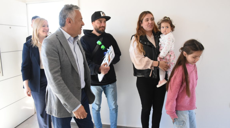 El Gobernador Alfredo Cornejo y la vicegobernadora, Hebe Casado, encabezaron la entrega de las llaves de las casas en el barrio Sun Valley I, ubicado en el departamento del Sur. La inversión asciende a $3.357 millones.