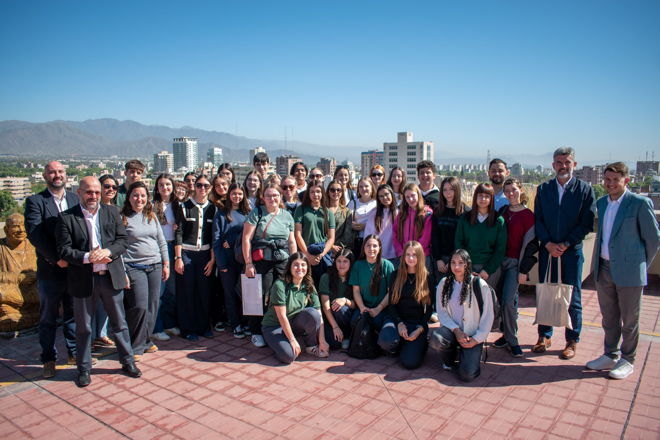 | El intendente de la Ciudad de Mendoza, Ulpiano Suarez, recibió este martes por la mañana a un grupo de estudiantes franceses que se encuentran de visita en la provincia en el marco del programa “Si estudiara al otro lado del Atlántico”.El encuentro tuvo lugar en la Terraza Jardín Mirador de la Municipalidad, donde Ulpiano Suarez dialogó con los jóvenes mendocinos y franceses sobre la experiencia compartida en ambos países. Además, durante la jornada, una guía turística de la Capital acompañó a los adolescentes en un recorrido por los cuatro puntos cardinales desde la Terraza, brindándoles un breve repaso sobre la historia, la cultura y la arquitectura de Mendoza.En esta quinta edición del proyecto, quince alumnos de nivel secundario provenientes de los liceos Charles de Gaulle y Sainte-Marie, de la ciudad de Caen, Normandía, concretan su inmersión lingüística y cultural. Acompañados por la profesora Caroline Vrech, los jóvenes se alojan en casas de familias mendocinas pertenecientes a las escuelas 4-097 Gilda Cosma de Lede, de Maipú, y Sagrado Corazón, de Ciudad.Durante tres semanas convivirán con sus “corres” -estudiantes mendocinos que previamente vivieron la experiencia en Francia-, asisitirán a clases, participarán en actividades culturales y turísticas, y recorrerán distintos puntos de la provincia. Este intercambio consolida un lazo de amistad entre ambos países, impulsado por la Asociación Civil Mendoza-Fleury, que desde sus inicios promueve la cooperación educativa y cultural entre Mendoza y Normandía.“Estamos realizando la quinta edición del proyecto `Si estudiara al otro lado del Atlántico´, una experiencia de inmersión lingüística y cultural que une a jóvenes mendocinos y franceses”, explicó Marcelo Guevara Bernardon, presidente de la Asociación Civil Mendoza-Fleury. “Los estudiantes de Mendoza viven tres semanas en Normandía, donde comparten con familias locales y asisten a escuelas, y luego los jóvenes franceses vienen a nuestra Ciudad, se alojan con las mismas familias y practican el español mientras conocen nuestras instituciones, bodegas y museos. Es un intercambio que enriquece muchísimo a ambos grupos”.Entre los asistentes al encuentro estuvieron también la profesora a cargo de la delegación francesa, Caroline Vrech; el coordinador de Relaciones Internacionales de la Ciudad, Franco Gennari; y la directora de Escuelas de la DGE, Claudia Ávila.Por su parte, Margot, una de las estudiantes francesas, compartió su impresión sobre la visita: “Me gusta mucho la Ciudad de Mendoza: es una ciudad bellísima, con muchas plazas, árboles y gente muy simpática. Lo que más me impresiona es la cordillera, las noches con estrellas y el clima cambiante, que tiene algo mágico. En Francia la gente es más cerrada; acá todos sonríen y son muy amables”.Al término del encuentro en la Terraza Jardín Mirador, los adolescentes partieron a bordo del Bus Turístico de la Ciudad para conocer, entre otros puntos turísticos, las hermosas plazas de la capital mendocina.VIDEO |