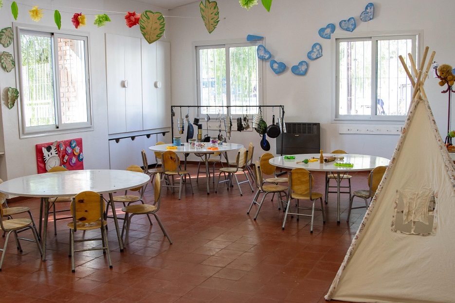 Cada sector del edificio fue diseñado pensando en la infancia y en la inclusión. Es que, además de brindar educación inicial, el espacio ofrece servicios de apoyo escolar, orientación pedagógica, fonoaudiológica y psicológica. Como así también, acompañamiento socio-familiar para las familias de la comunidad.
