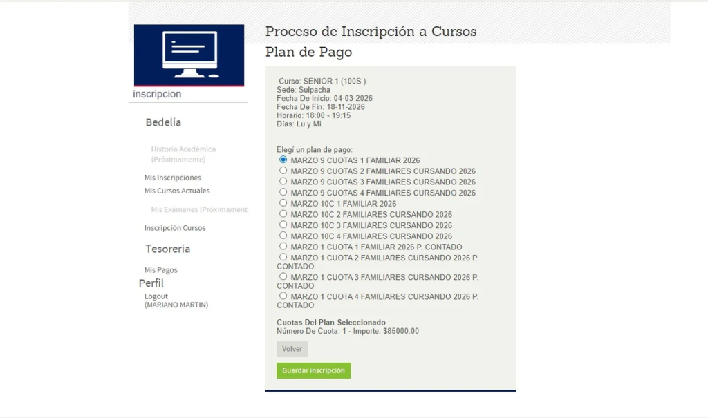 Un curso regular equivalente (nivel Senior), con cursada de marzo a noviembre y una carga de dos horas y media semanales en la misma sede de calle Suipacha, tiene un valor mensual de $85.000. Al multiplicar esa cuota por los nueve meses que dura el ciclo lectivo, un alumno particular invierte un total de $765.000.