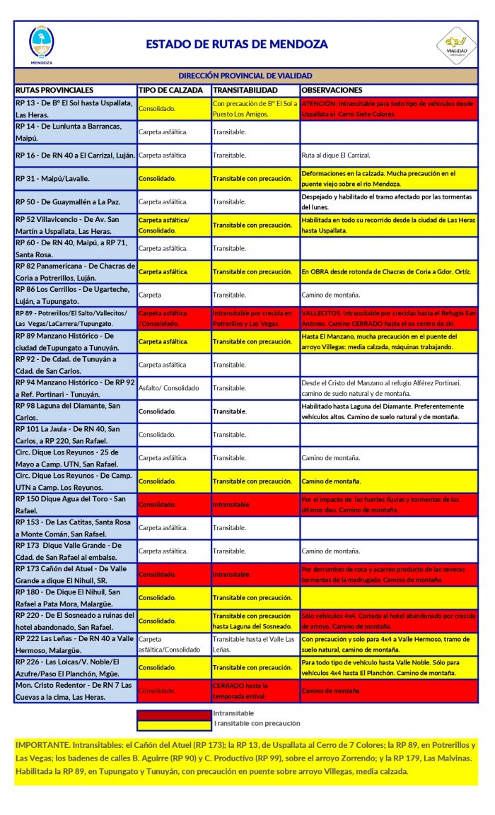 Para conocer el estado de las rutas nacionales en Mendoza, visite el siguiente enlace.
