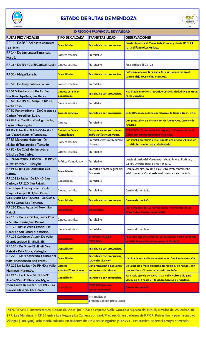 Para conocer el estado de las rutas nacionales en Mendoza, visite el siguiente enlace.