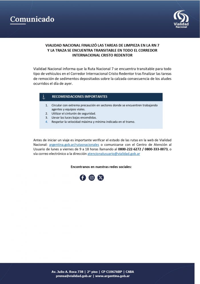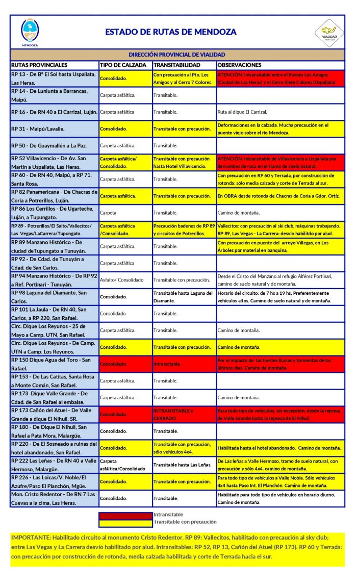 Para conocer el estado de las rutas nacionales en Mendoza, visite el siguiente enlace.