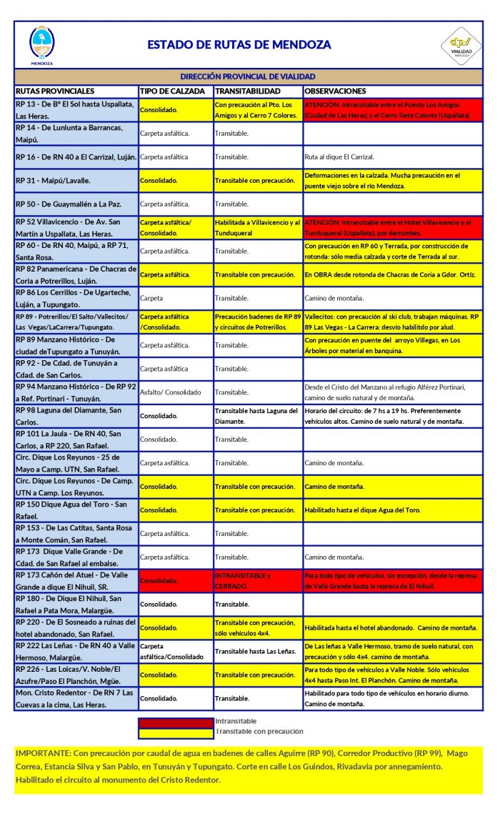 Para conocer el estado de las rutas nacionales en Mendoza, visite el siguiente enlace.