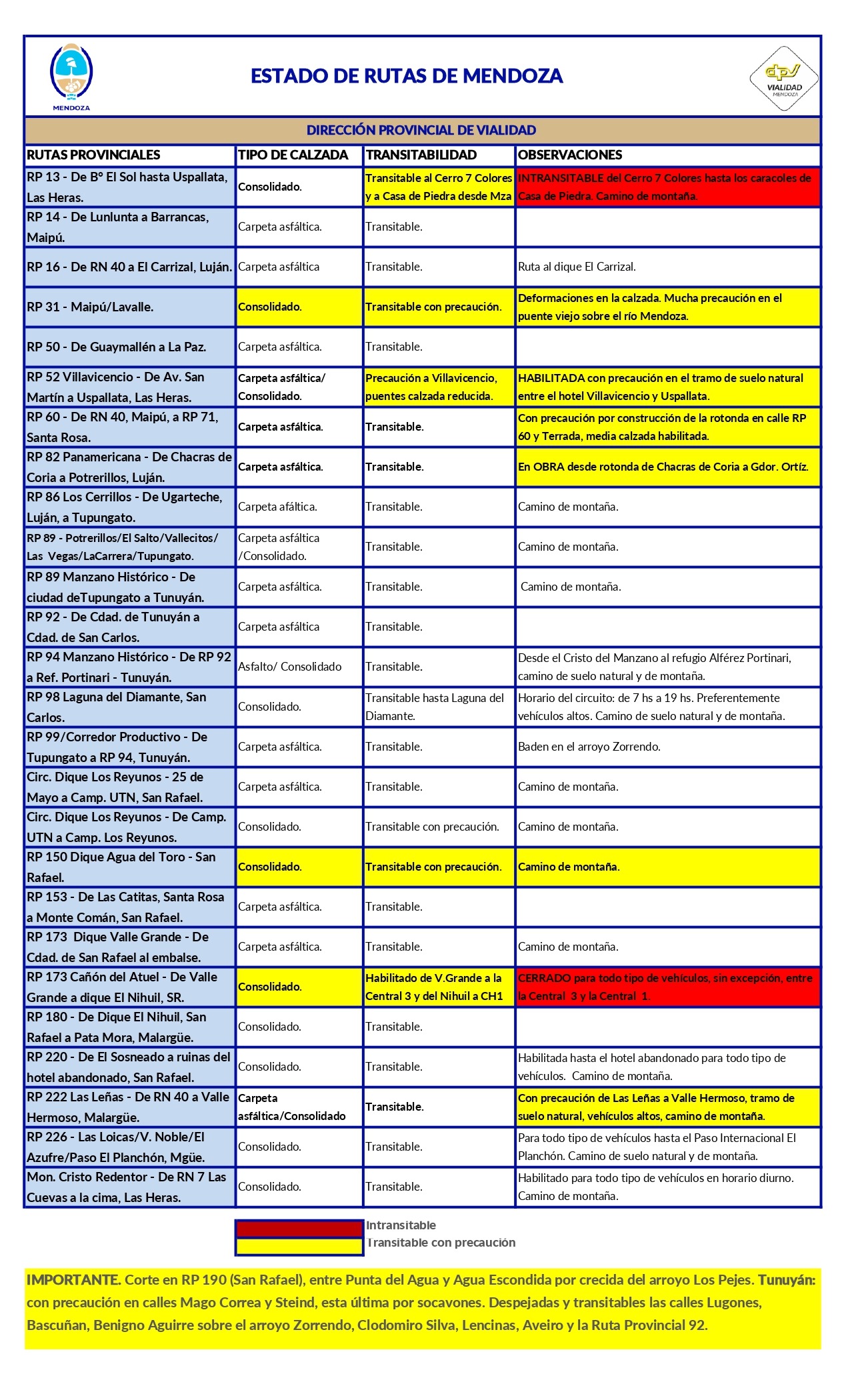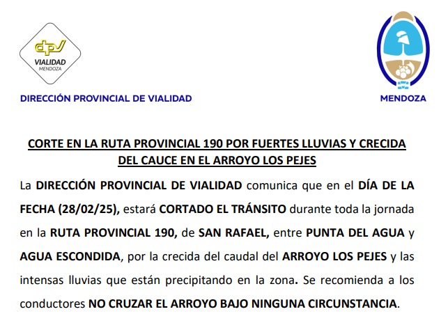 Para conocer el estado de las rutas nacionales en Mendoza, visite el siguiente enlace.