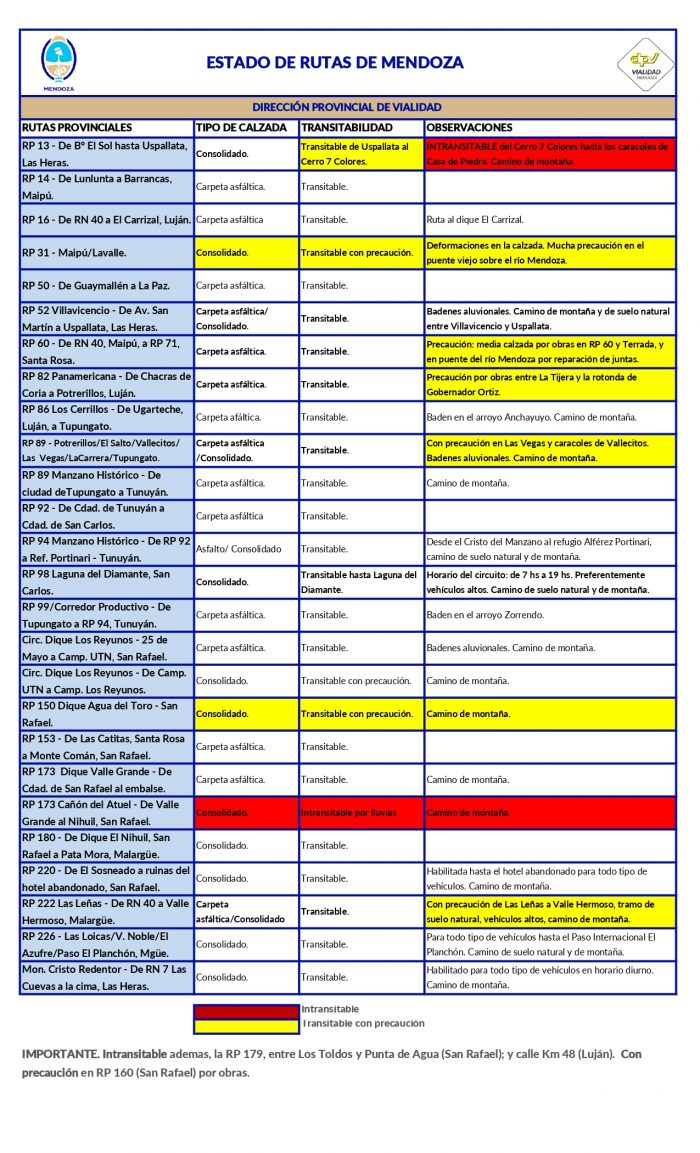 Para conocer el estado de las rutas nacionales en Mendoza visite el siguiente enlace.