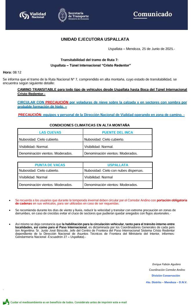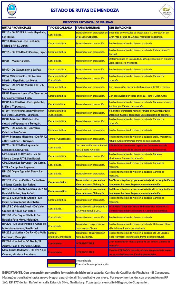Para conocer el estado de las rutas nacionales en Mendoza, visite el siguiente enlace.