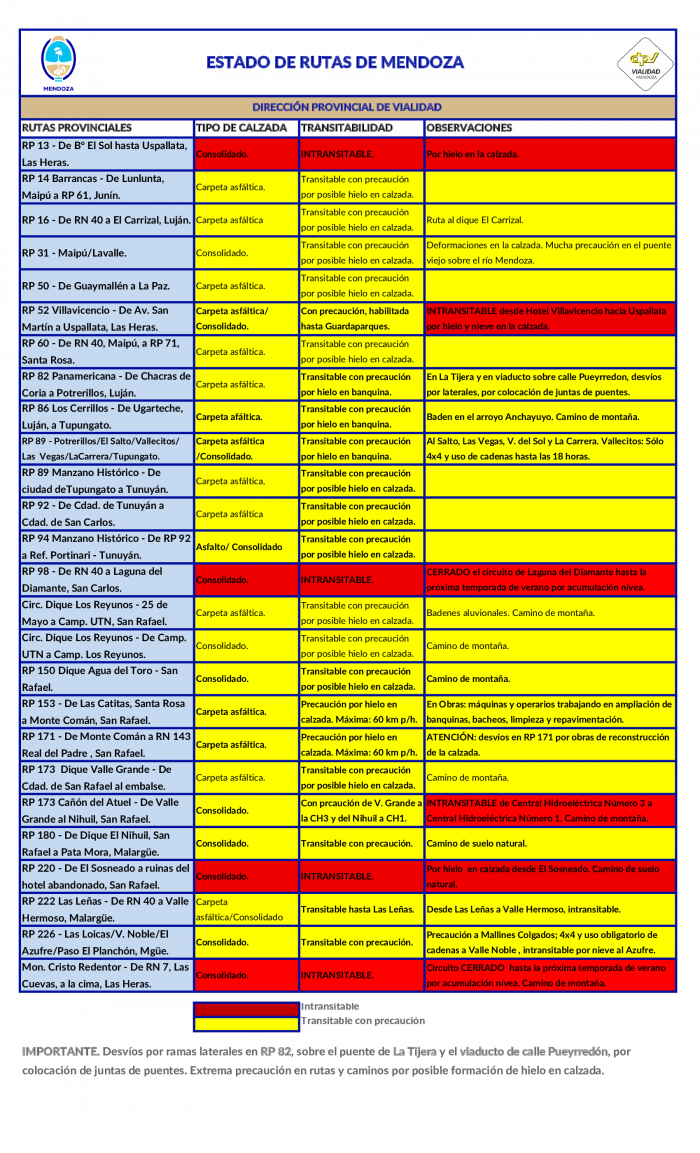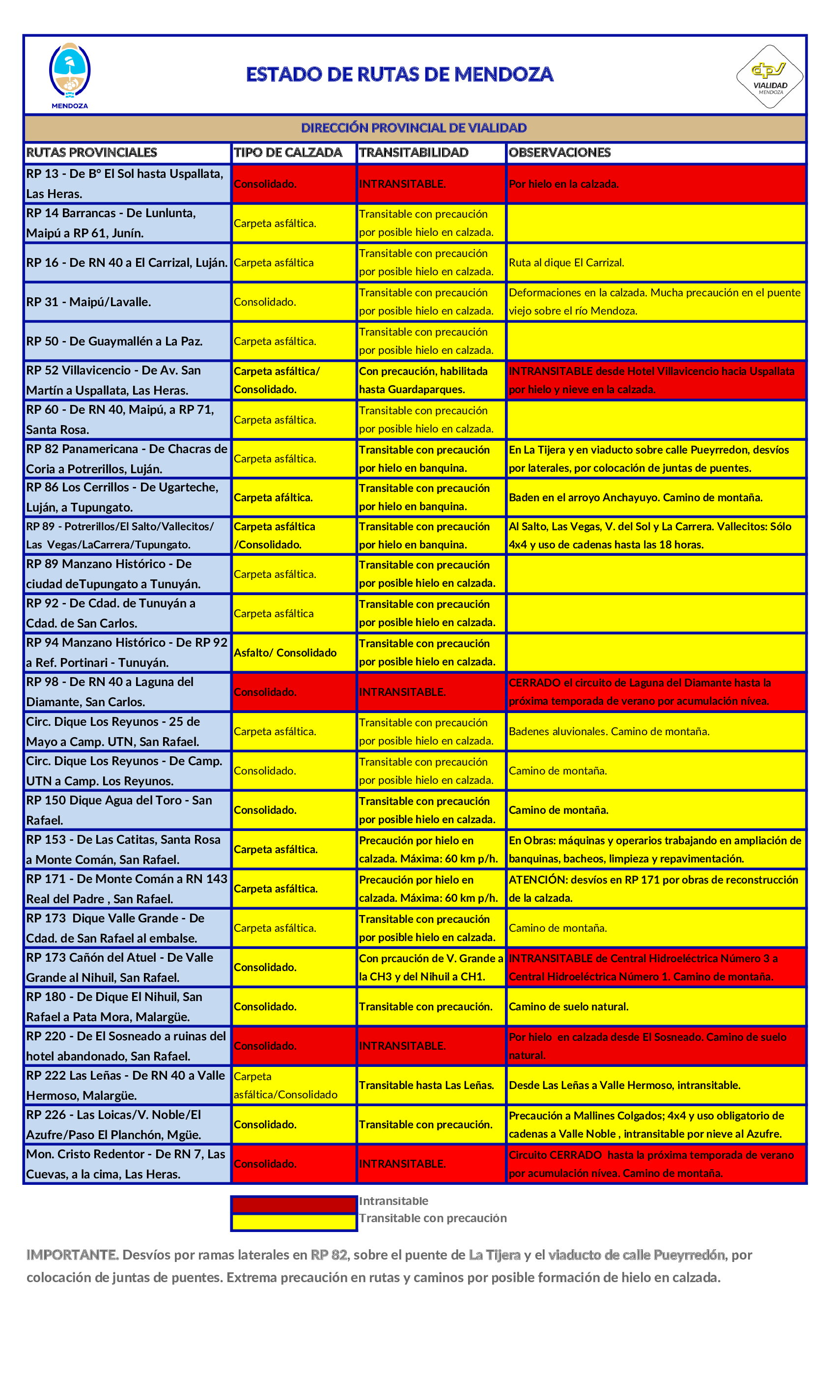 Para conocer el estado de las rutas nacionales en Mendoza, visite el siguiente enlace.