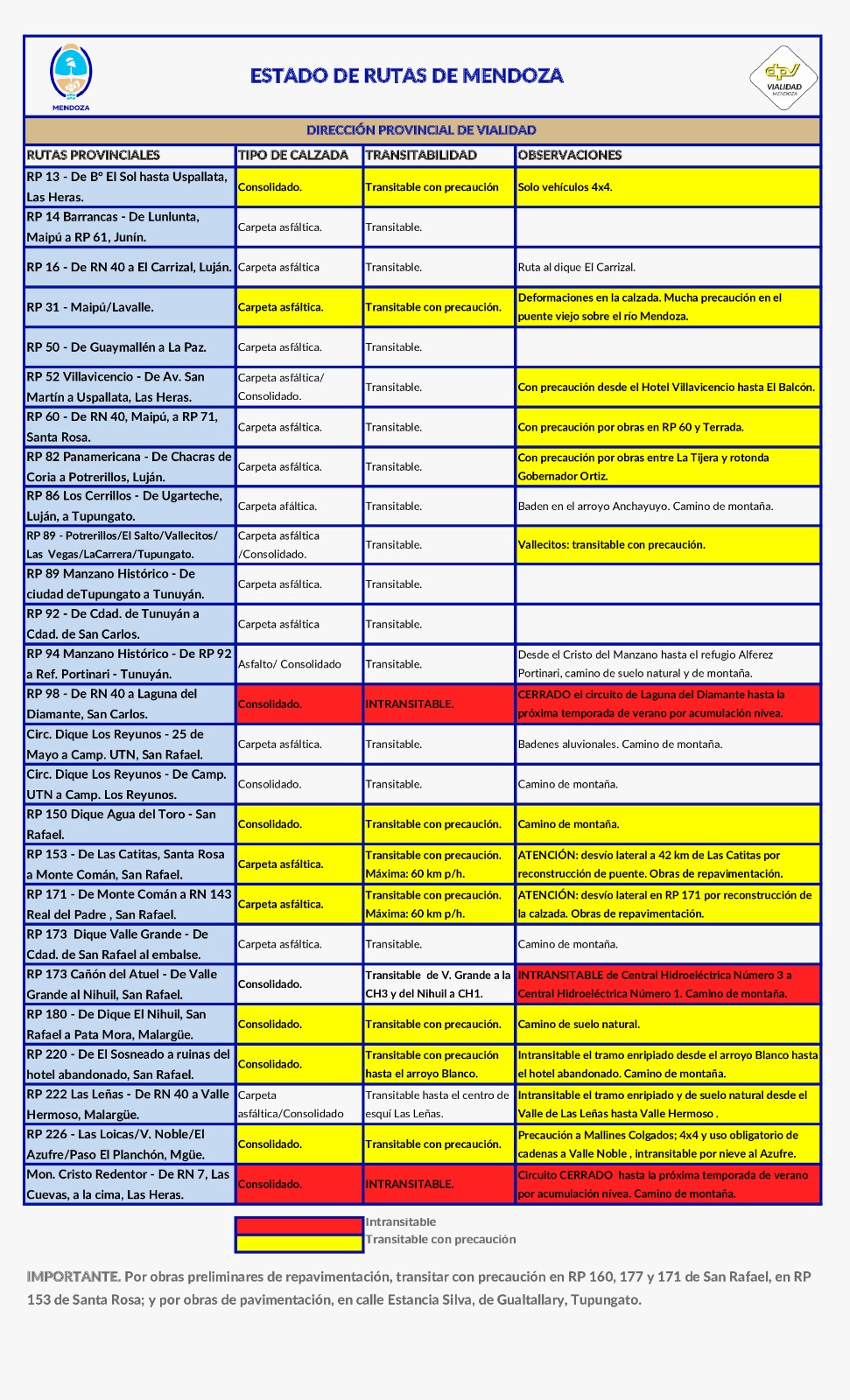 Para conocer el estado de las rutas nacionales en Mendoza, visite el siguiente enlace.