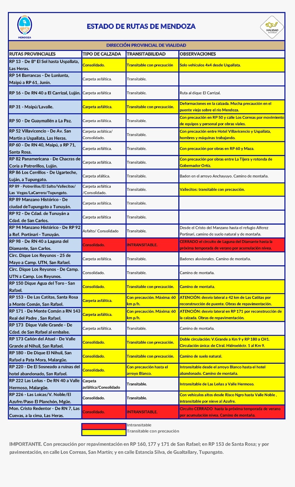 Para conocer el estado de las rutas nacionales en Mendoza, visite el siguiente enlace.