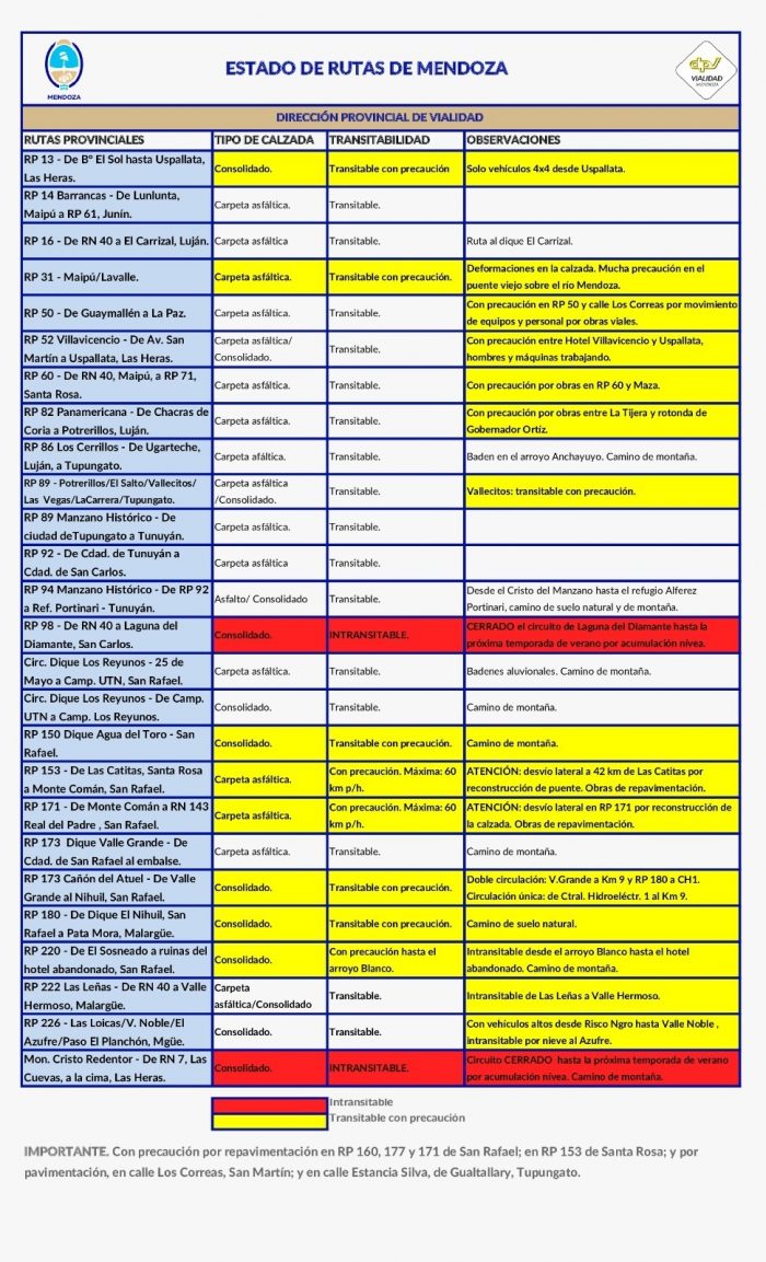 Para conocer el estado de las rutas nacionales en Mendoza, visite el siguiente enlace.