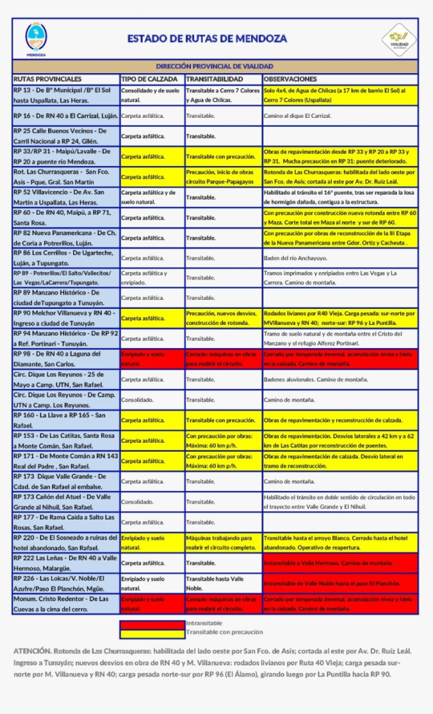 Provinciales Estado de las rutas en Mendoza 25 noviembre, 202525 noviembre, 2025 Otras Voces MDZ 0 comentarios