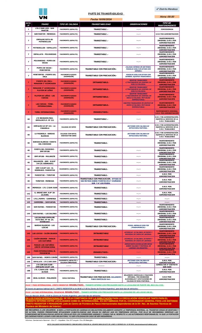 Provinciales Estado de las rutas en Mendoza 16 junio, 202416 junio, 2024 Otras Voces MDZ 0 comentarios 16 DE JUNIO, 2024 Estado de las rutas provinciales Estado de las rutas nacionales