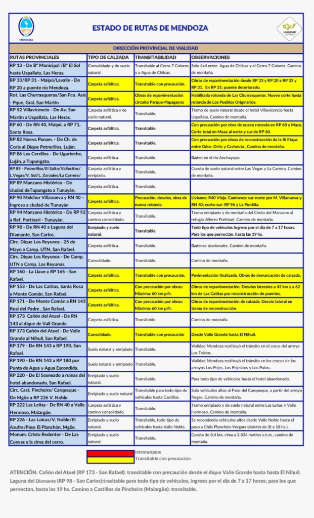 Provinciales Estado de las rutas en Mendoza 15 enero, 202615 enero, 2026 Otras Voces MDZ 0 comentarios