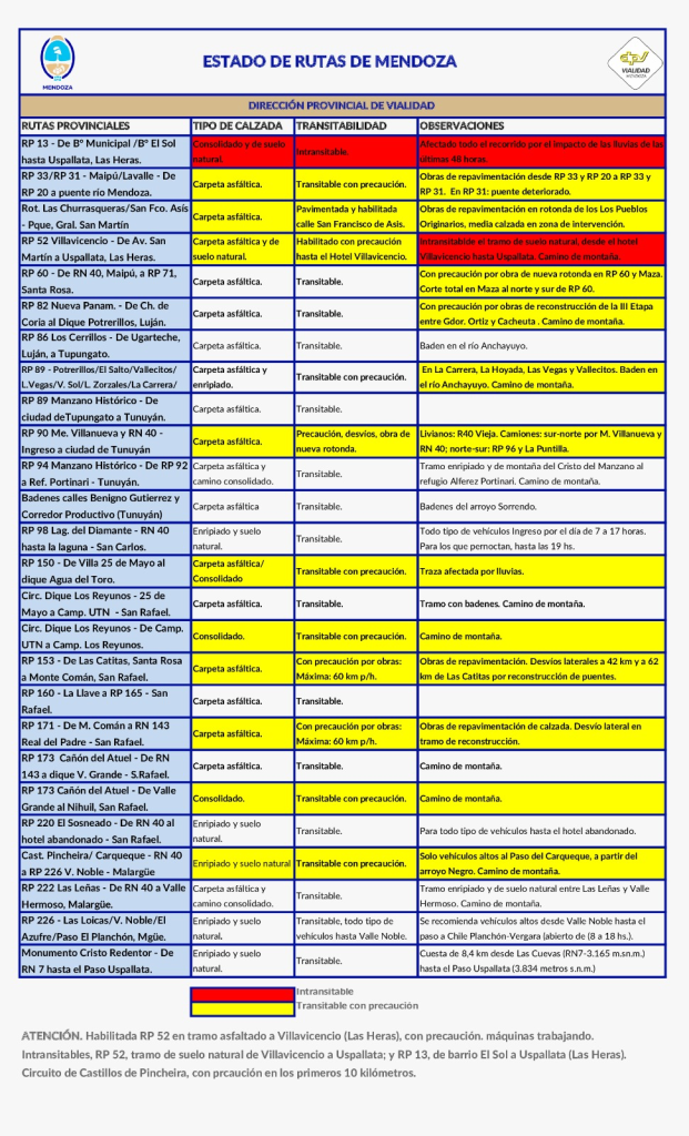 Provinciales Estado de las rutas en Mendoza 27 enero, 202627 enero, 2026 Otras Voces MDZ 0 comentarios