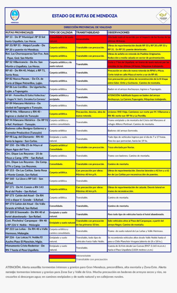 Provinciales Estado de las rutas en Mendoza 30 enero, 202630 enero, 2026 Otras Voces MDZ 0 comentarios