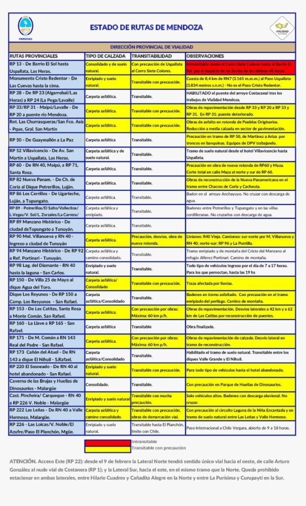 Provinciales Estado de las rutas en Mendoza 9 febrero, 20269 febrero, 2026 Otras Voces MDZ 0 comentarios
