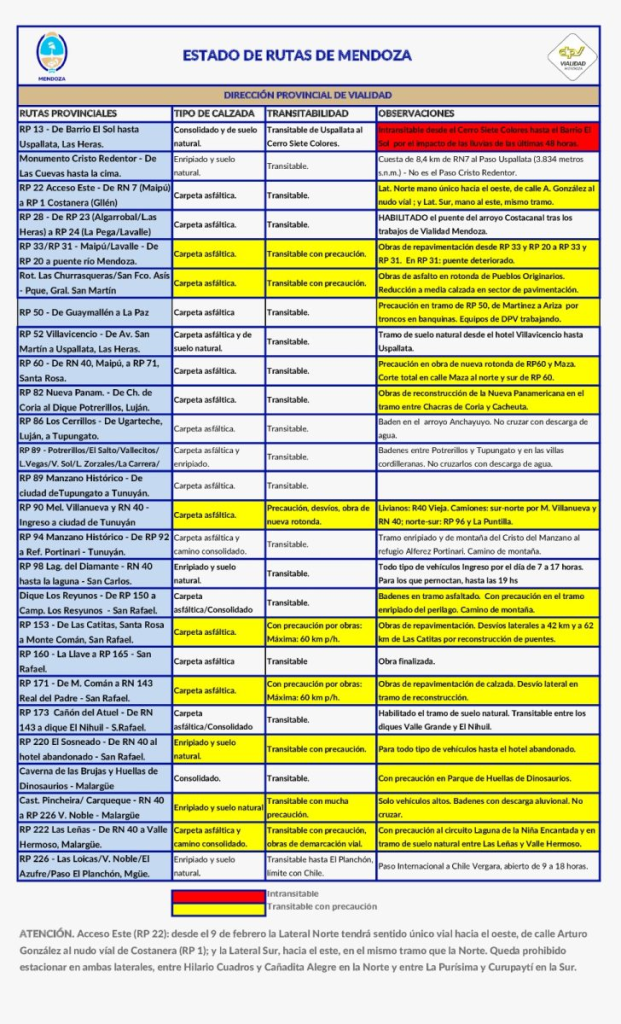 Provinciales Estado de las rutas en Mendoza 12 febrero, 202612 febrero, 2026 Otras Voces MDZ 0 comentarios