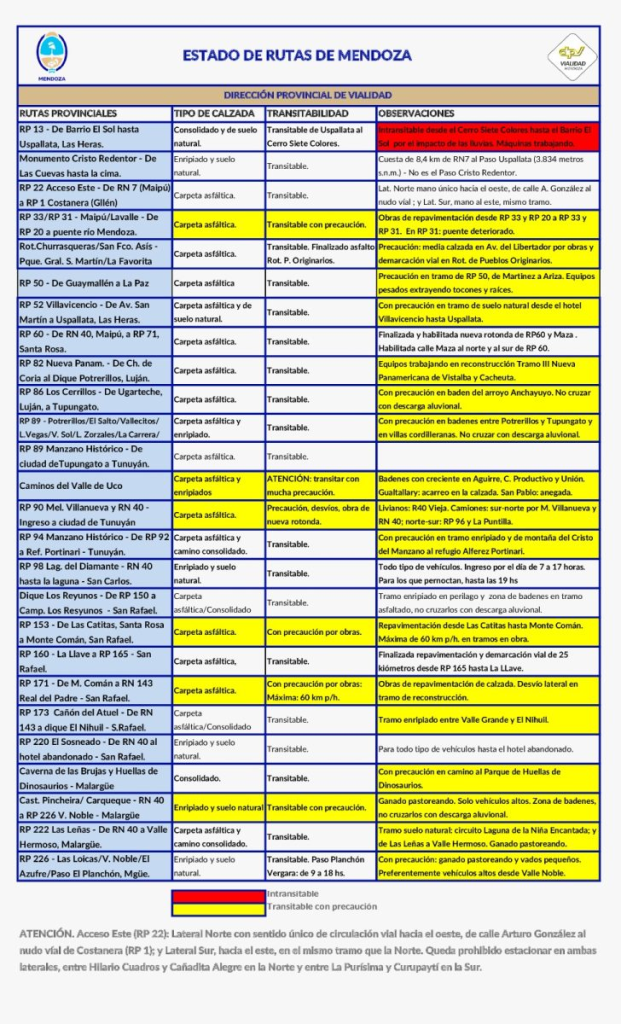 Estado de las rutas en Mendoza