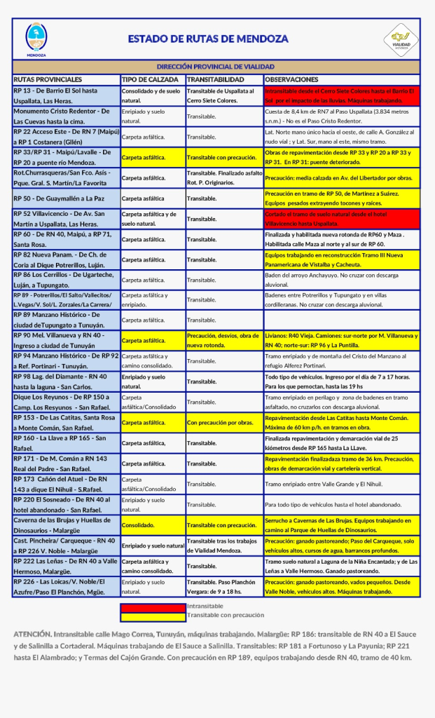 Estado de las rutas en Mendoza