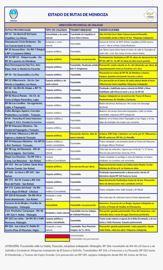 Provinciales Estado de las rutas en Mendoza 12 marzo, 202612 marzo, 2026 Otras Voces MDZ 0 comentarios
