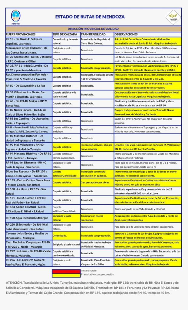 Provinciales Estado de las rutas en Mendoza 16 marzo, 202616 marzo, 2026 Otras Voces MDZ 0 comentarios