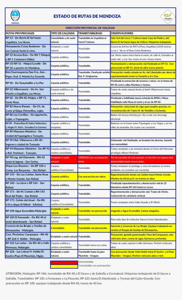 Provinciales Estado de las rutas en Mendoza 30 marzo, 202630 marzo, 2026 Otras Voces MDZ 0 comentarios