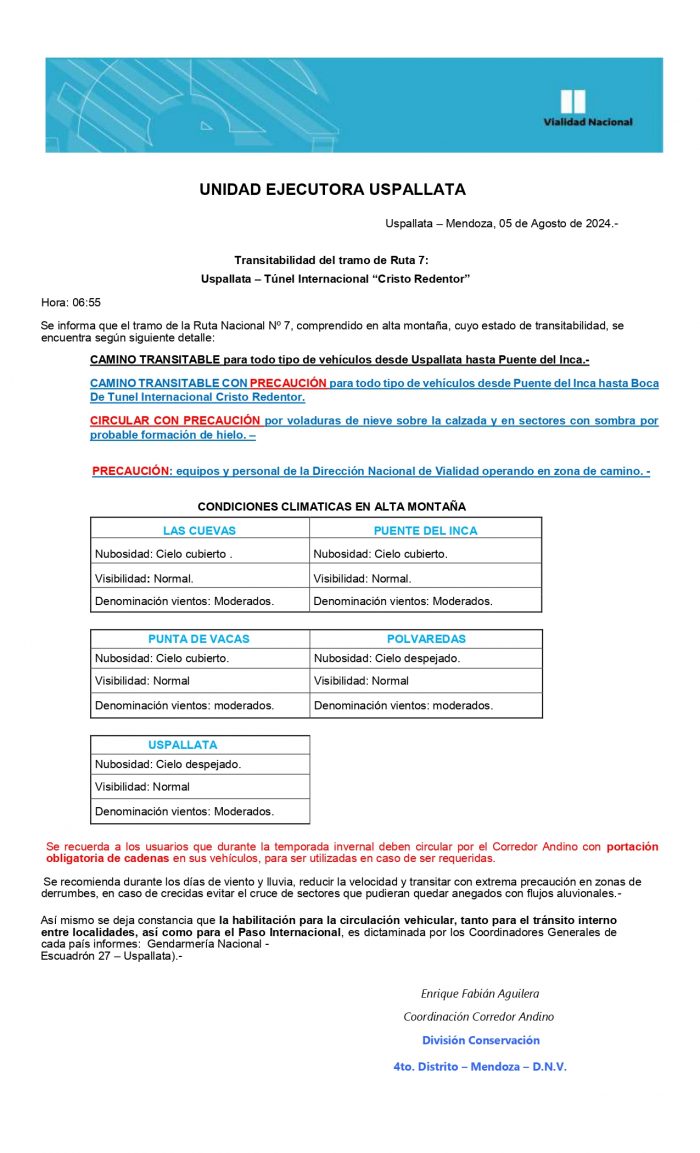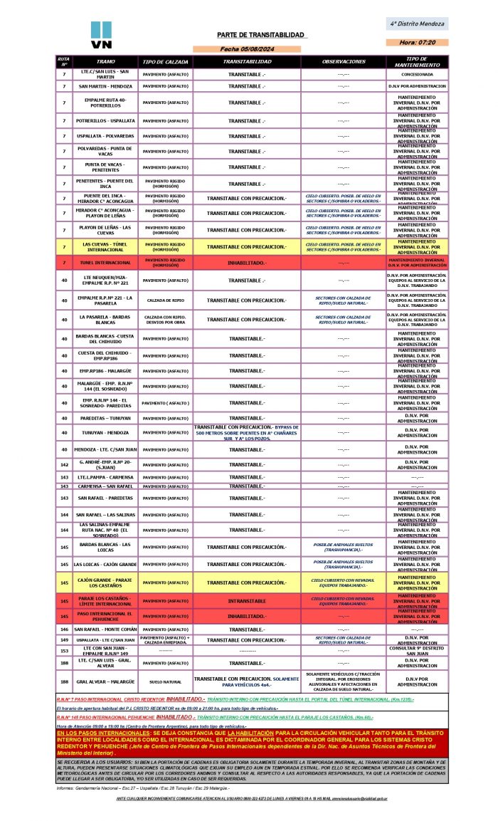 Para conocer el estado de las rutas nacionales en Mendoza, visite el siguiente enlace.