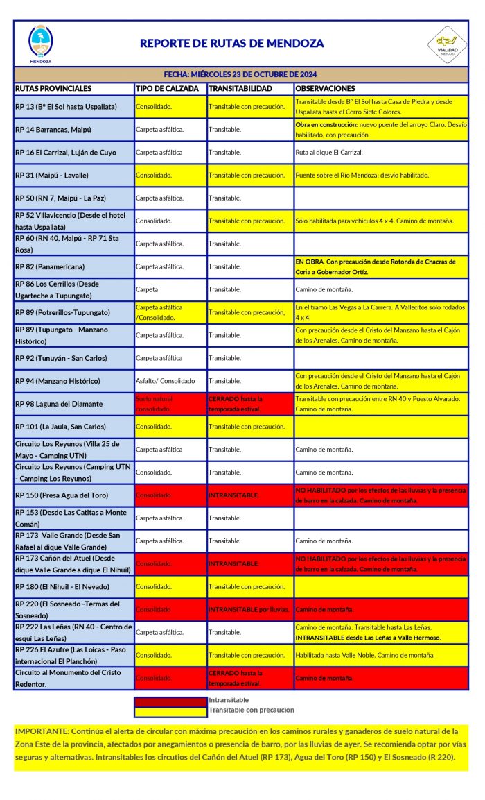 Para conocer el estado de las rutas nacionales en Mendoza, visite el siguiente enlace.