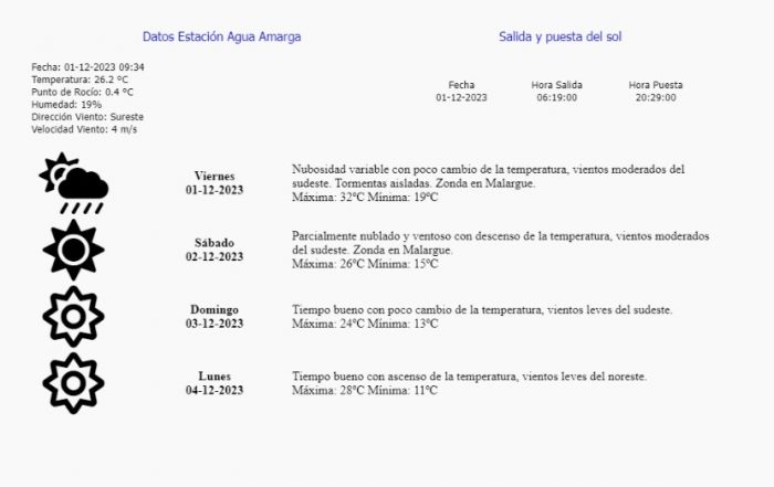 Consulte el reporte meteorológico de la Dirección Provincial de Defensa Civil.