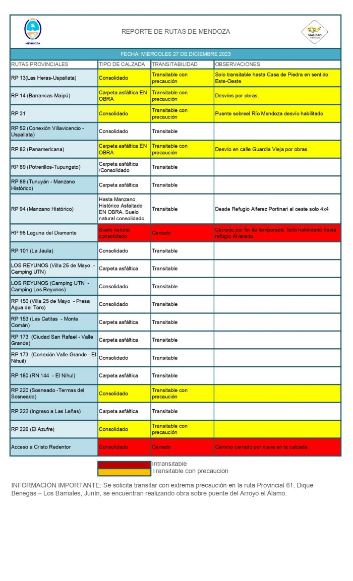 Consulte el Estado del Paso Internacional Cristo Redentor y del Paso Pehuenche.