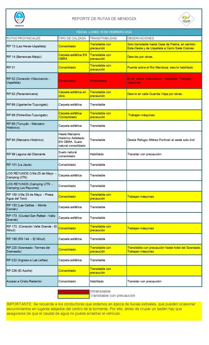 Consulte el Estado del Paso Internacional Cristo Redentor y del Paso Pehuenche.