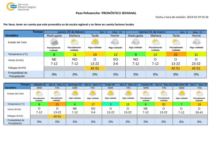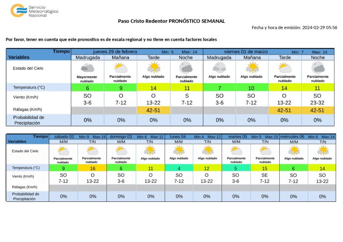 Vientos: Circulación de norte a sur, desde las 11:00. hasta las 21:00, en forma leve abarcando zona Este y zona Sur de Mendoza.