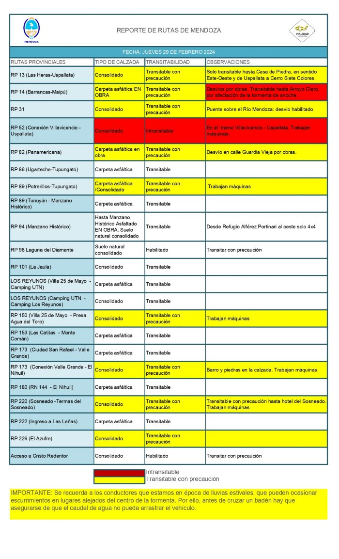 Consulte el Estado del Paso Internacional Cristo Redentor y del Paso Pehuenche.