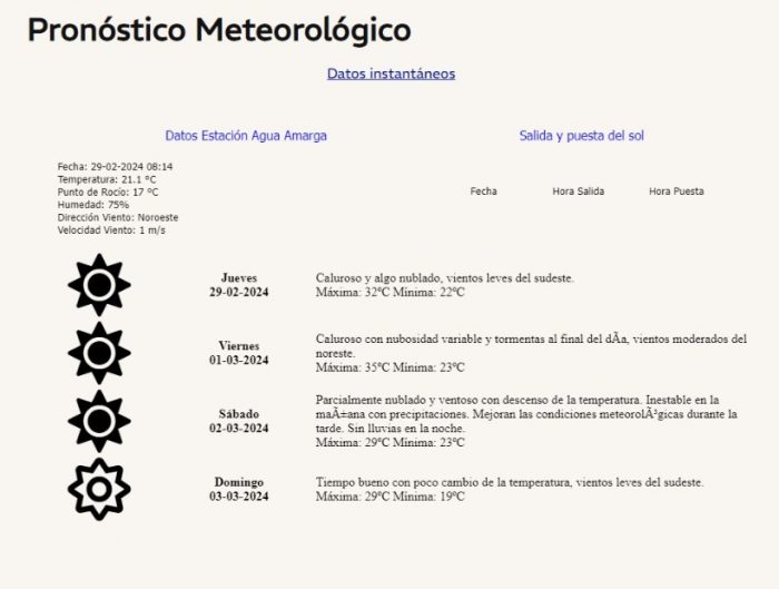 Vientos: Leve brisa del este en zona Sur. El resto de la Provincia, situación calma.