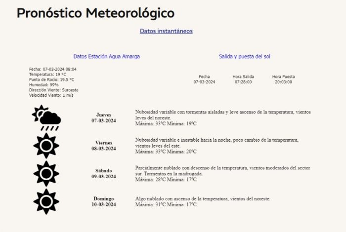 Tormenta y nubosidad: Despejado por la mañana hasta las primeras horas de la tarde.