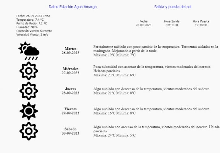 Viento: Desde la madrugada y, al amanecer, viento Sur moderado sobre toda la provincia. Perduraría hasta la tarde.