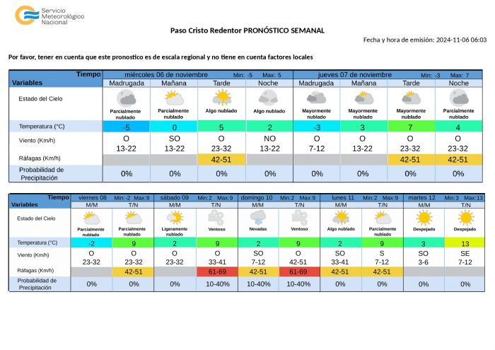 Alta Montaña: Cielo seminublado, en cordillera Sur y de Valle de Uco.