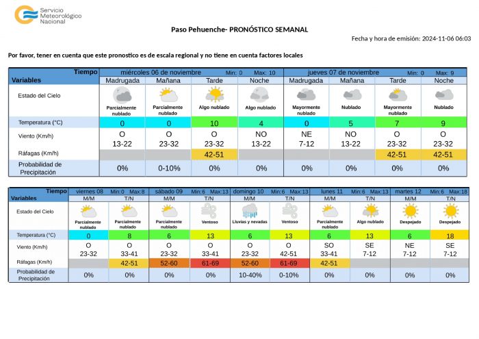 Vientos: Circulación leve del sur, desde las 6, hasta las 21. Afectando zona Sur, zona Este y Norte.